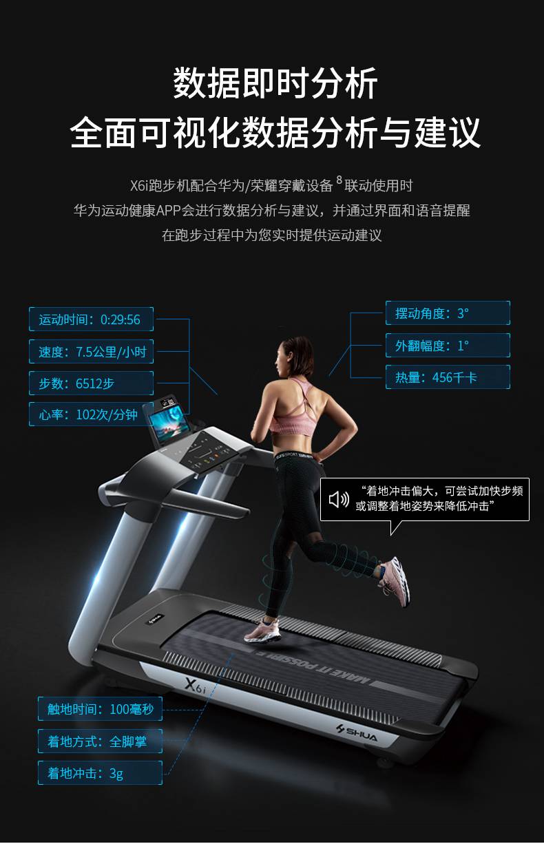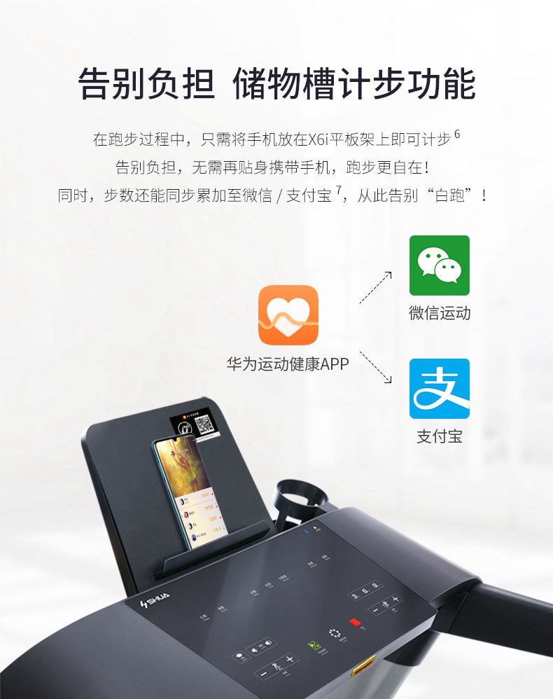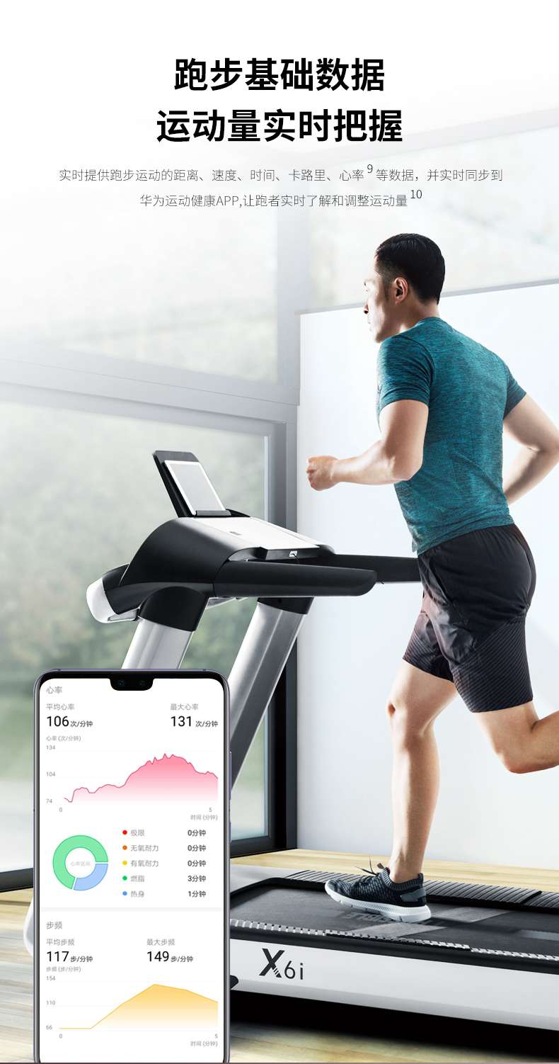 bsports官网跑步机-X6心率跑步机,可根据用户运动是实时心率,跑步机自动调节跑步速度、坡度等进行运动强度的调节,更科学;X6i华为版跑步机,可以通过连接华为运动健康APP,监测多种类型跑步数据。欢迎来电咨询~