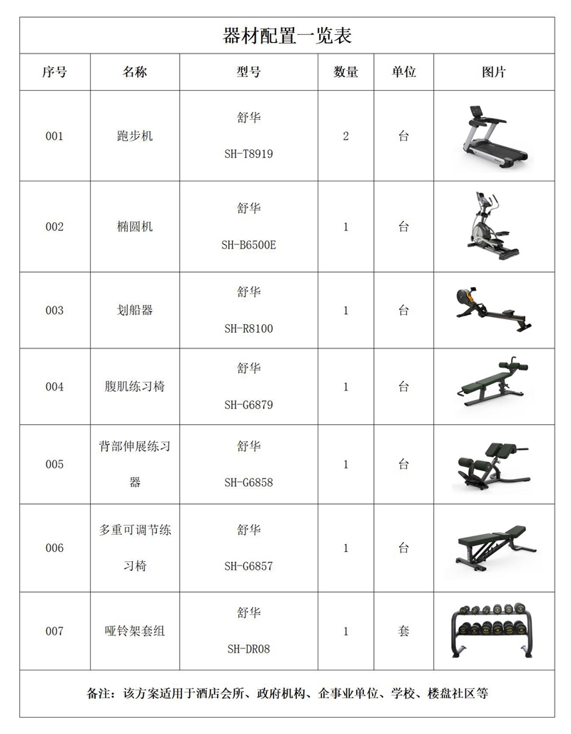 健身器材配置说明