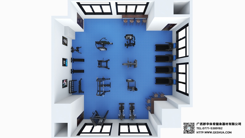此方案要求面积小于118平米,适用于企事业单位健身房、酒店会所健身房、楼盘社区健身房,能满足20-30人同时健身使用。(方案根据场地空间大小、预算、产品需求等进行配置仅为启发性参考)