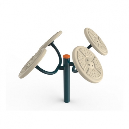 双腿呈马步,双手握压转轮表面,向相同或相反方向转动