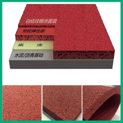 自结纹塑胶跑道采用特种聚氨酯胶浆,通过严谨的化学反应形成防滑凹凸面层,不掉粒,不虚线,无需特别的人工养护,售后服务成本低。