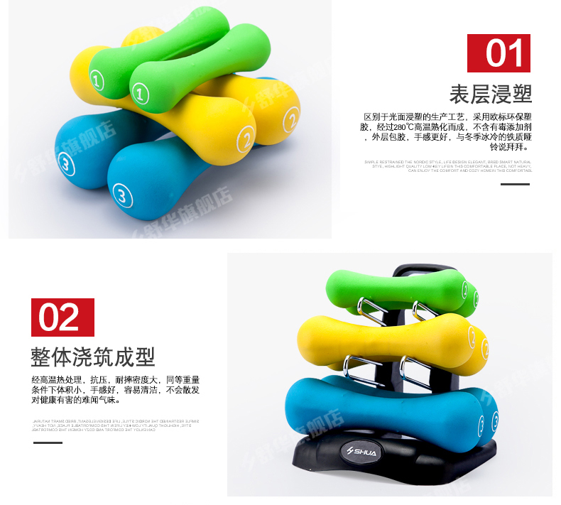 bsports官网SHUA浸塑哑铃套装 家用男士女士健身时尚环保健身运动器材