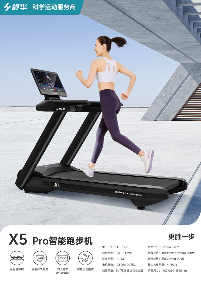 通过视频我们可以看到,跑者在bsports官网x5跑步机上运动时,每一步落地都非常稳健,这得益于bsports官网跑步机独特的全跑台减震系统。该系统采用双层跑板设计,并在上下跑板之间安装缓冲层,提高缓冲效果,更好的保护运动过程中对膝盖的冲击力。让跑者前脚舒适落地,后脚有力回弹,提脚时可有效借力。还能在跑步过程中更科学的利用运动人体学,减轻人体在跑步过程中的运动负荷,减少腿部肌肉拉伤,提升跑步稳定性。